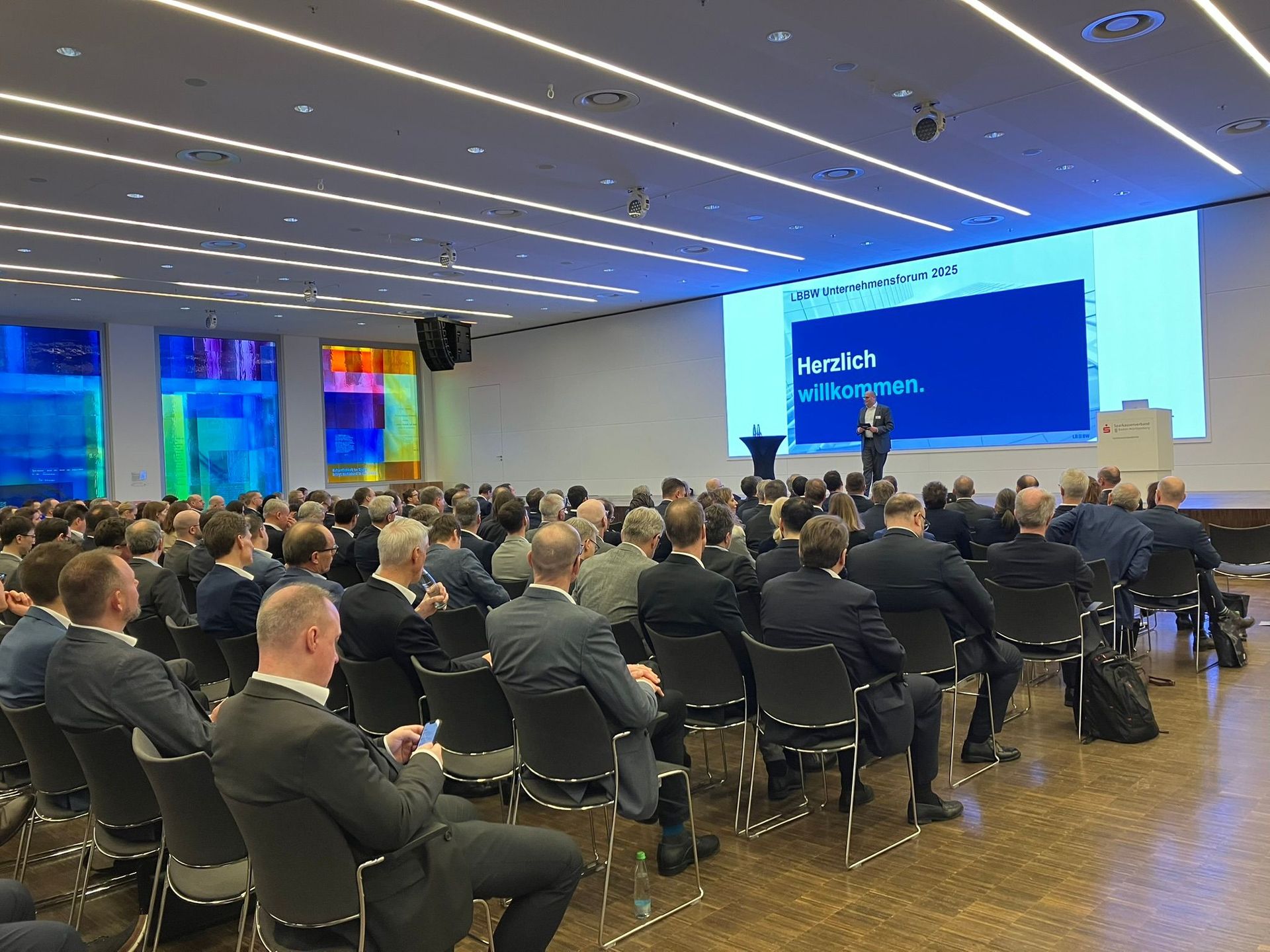 Zum 10. Jubiläum präsentierte sich das Unternehmensforum der LBBW erneut als wertvolles Gesprächsforum für uns und unsere Kunden. Der Veranstaltungsort am Kleinen Schlossplatz in Stuttgart bot die ideale Kulisse für den Erfahrungsaustausch zu unserer digitalen Plattform, Weiterentwicklungen und aktuellen Themen wie Künstlicher Intelligenz.